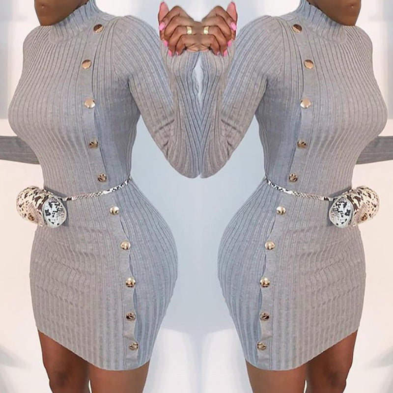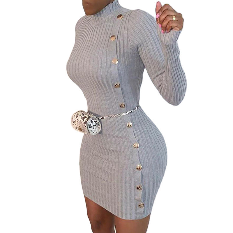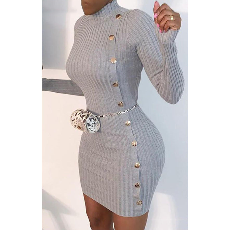 Solid Color Sexy Slim Single-Breasted Long-Sleeved Dress